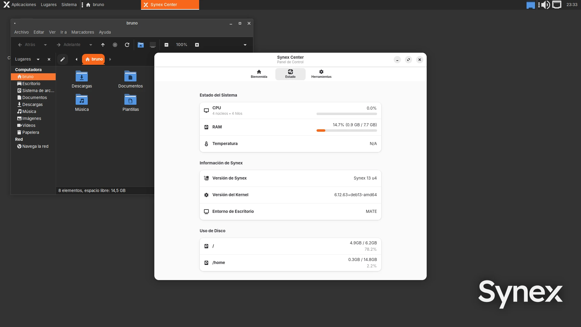 Synex MATE positions itself as a balanced alternative between full editions (GNOME/KDE) and ultra-lightweight ones. Based on MATE Desktop Environment, this edition combines the familiarity of the classic desktop paradigm initiated with GNOME 2 with moderate resource consumption. MATE was chosen for representing the continuity of the traditional environment: conventional application menu, configurable panel, and workflow proven over decades. Ideal for systems with 2-4GB RAM that require complete functionality without system overhead.