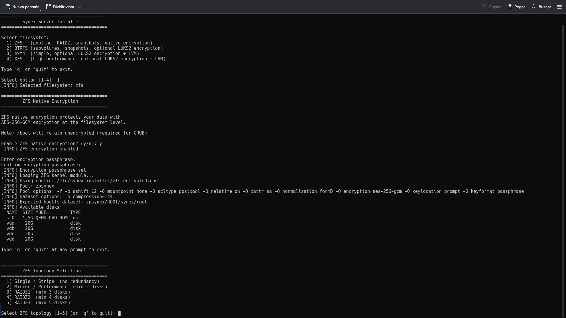 The leap from synex-zfs-installer to synex-installer represents the project’s maturation toward a comprehensive solution for enterprise storage. The ability to choose among four filesystems, each with optimized configurations and encryption adapted to their characteristics, positions Synex Server as a serious alternative for critical infrastructure.