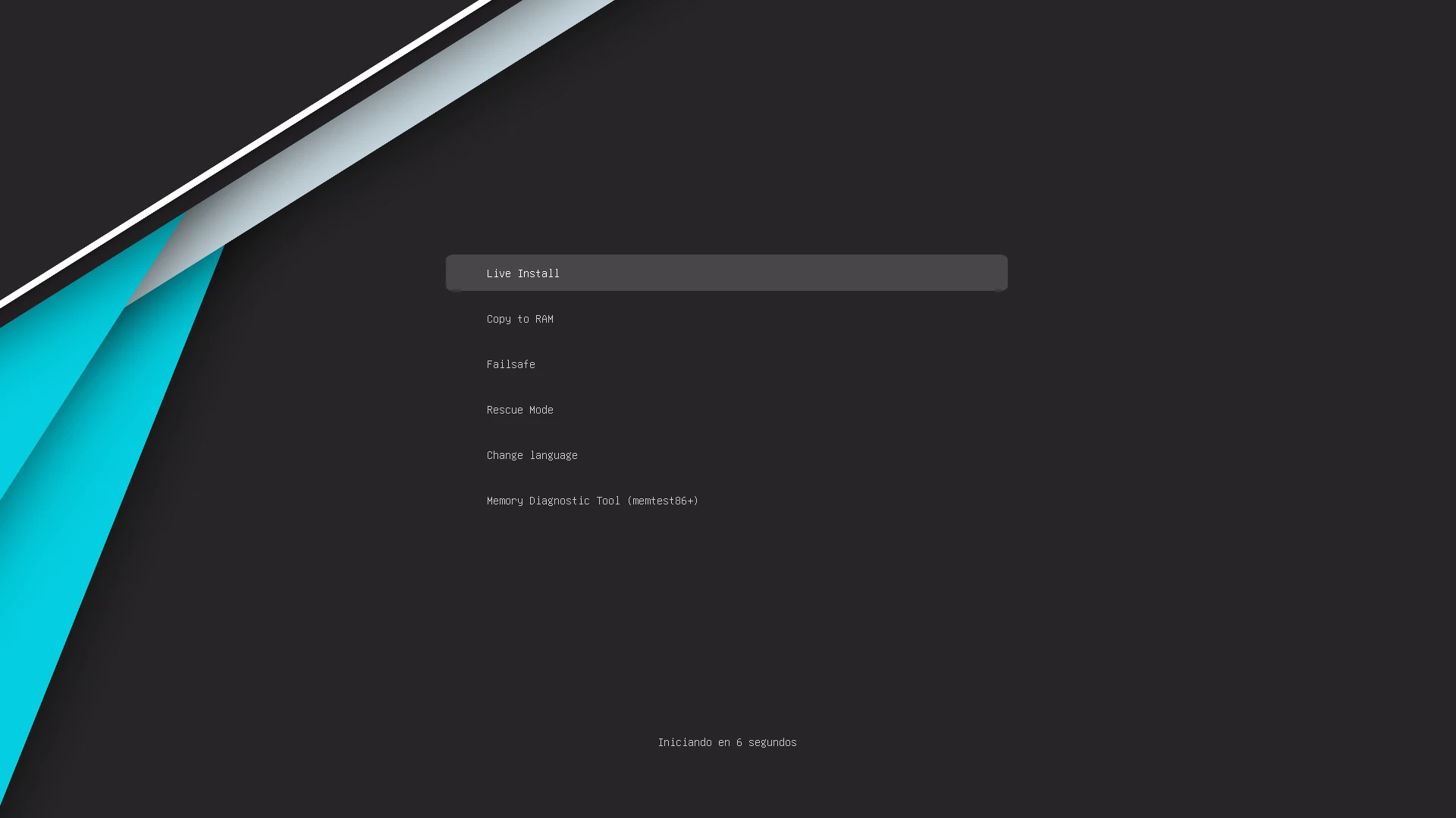 Aquí puedes elegir el idioma de arranque del sistema en vivo. Selecciona Español para que el entorno arranque en nuestro idioma.