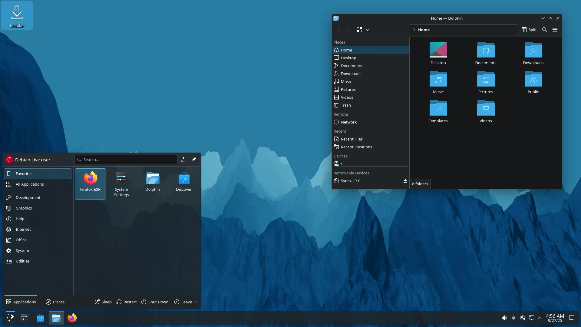 En el menú de inicio, selecciona la opción Instalar. Esto cargará el escritorio completo sin necesidad de instalar todavía.